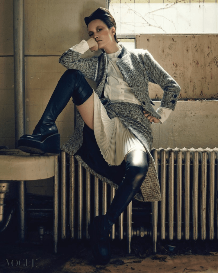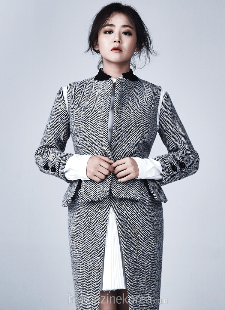 | Moon Geun Young với cả cây dạ sang trọng của Sacai. |