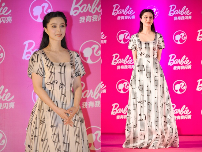 | Không cần trang sức hay phụ kiện, kết hợp kiểu tóc buông dài tự nhiên, “nữ hoàng hàng hiệu” Phạm Băng Băng vẫn tỏa sáng rực rỡ trong chiếc váy Christopher Bu có họa tiết hình nốt nhạc đen trên nền vải trắng thanh thoát. Hoa văn hình nốt nhạc đang là mốt xuân hè này và có nhiều nét tương đồng với họa tiết trong bộ sưu tập Haute Coutuer 2014 của thương hiệu Valentino. |