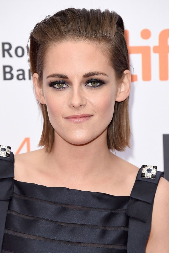 Cũng với kiểu hất ngược mái, Kristen Stewart lại rất cá tính. |