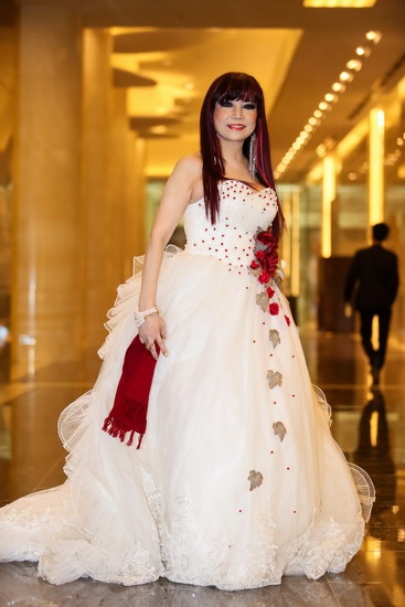 | Trang phục cô dâu của thập kỷ trước khiến ca sĩ Bảo Yến lạc lõng giữa sự kiện quy tụ dàn mỹ nhân trẻ đẹp. Dáng đầm bồng bềnh tông trắng còn bị cho là không phù hợp lứa tuổi người mặc. |