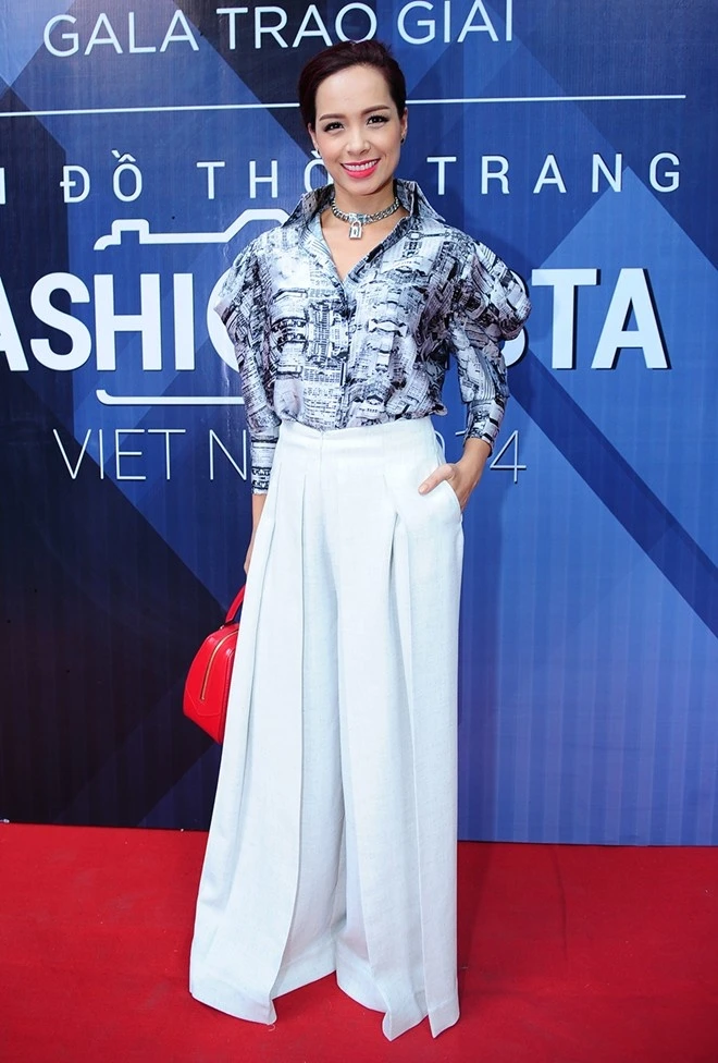 Trang phục của Thúy Hạnh cũng cho thấy gu thời trang bấp bênh của người đẹp. Thiết kế áo nhiều họa tiết thêm phần rườm rà bởi chi tiết tay bồng, chưa kể dáng quần suông dài xếp ly càng khiến hình ảnh kém độ tinh tế, sang trọng.