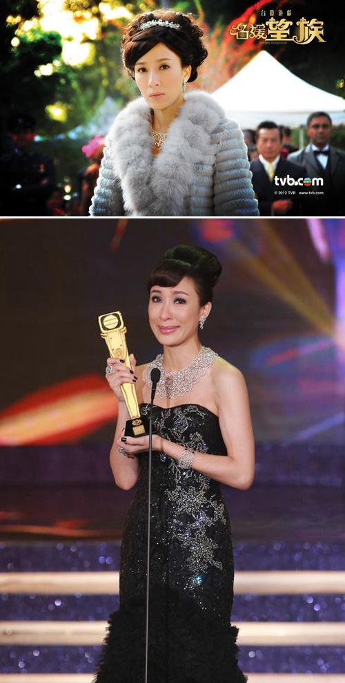 | Năm 2012, với vai cô đào hát Tái Phụng Hoàng trong Danh gia vọng tộc, Dương Di chạm tay đến bức tượng vàng danh hiệu Ảnh hậu TVB - Nữ diễn viên chính xuất sắc nhất. |