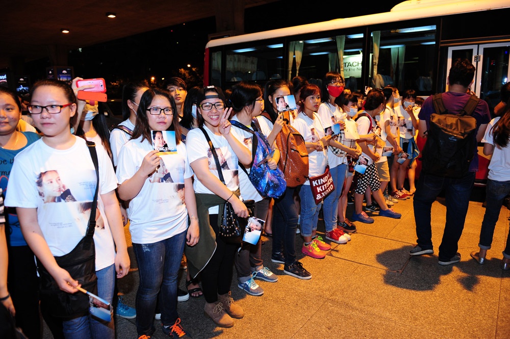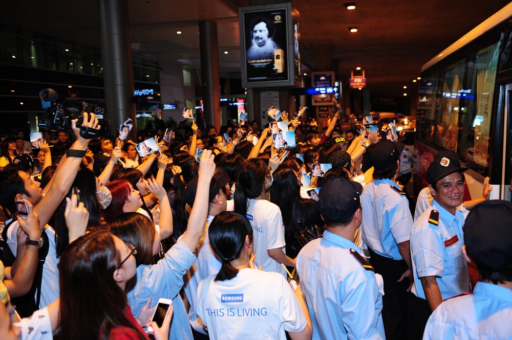 Fan chụp hình, vẫy gọi Song Ji Hyo khi chiếc xe chở cô chuẩn bị rời khỏi khu vực sân bay. Dù Song Ji Hyo đáp chuyến bay đến Việt Nam lúc giữa đêm nhưng rất nhiều bạn trẻ đã ra sân bay chờ hàng giờ đồng hồ để được gặp thần tượng.