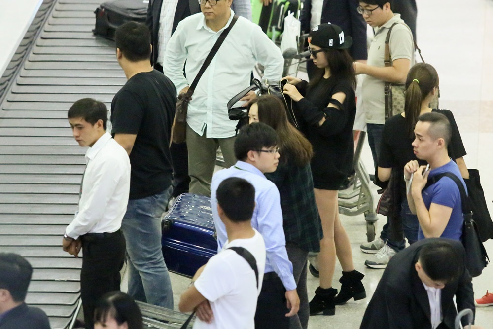 | Sau khi xuống máy bay, cô di chuyển cùng các cộng sự ra khu vực lấy đồ. Cũng như Kim Woo Bin, Song Ji Hyo rời khỏi sân bay Tân Sơn Nhất bằng khu vực cửa thường và tạo thiện cảm với nụ cười tươi tắn trên môi. Dù trải qua nhiều giờ bay mệt mỏi nhưng gương mặt nữ diễn viên luôn rạng rỡ. Cô trò chuyện vui vẻ cùng ê-kíp của mình. Ngoài đời, cô được khen ngợi là ngôi sao thân thiện. |