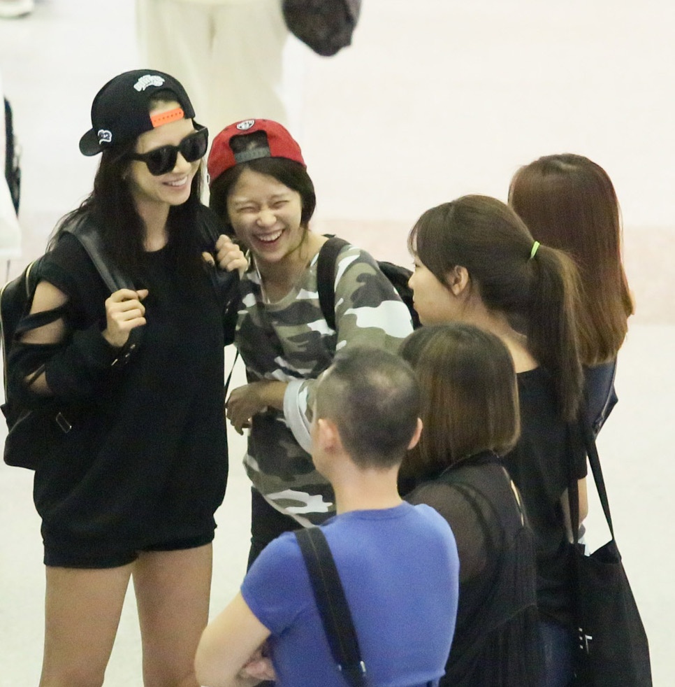| Khác với hình ảnh nữ tính như thường thấy, Song Ji Hyo ăn mặc thoải mái với thời trang giấu quần khoe đôi chân dài gợi cảm. Hình ảnh nữ diễn viên Running Man diện nguyên "cây" đen, đội mũ ngược, liên tục cười nói cùng các cộng sự khiến fan Việt thích thú. |