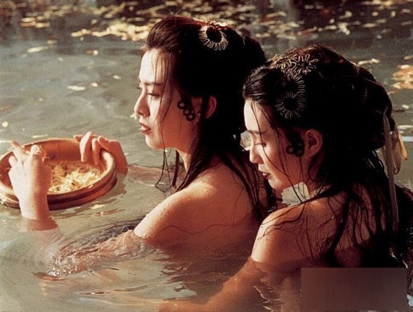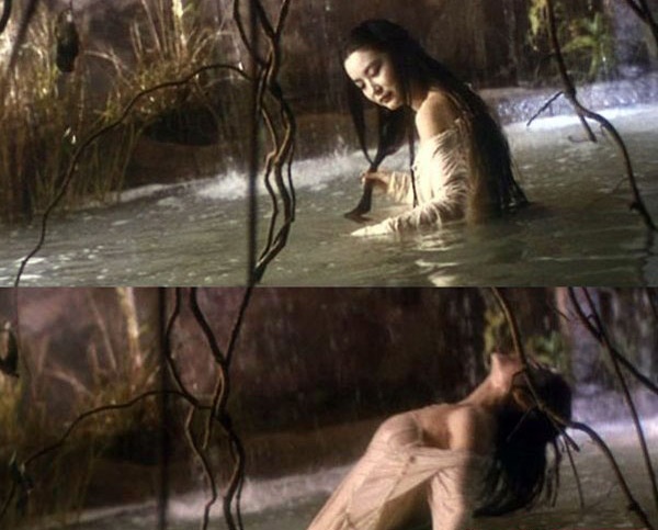 | Trương Mạn Ngọc và Vương Tổ Hiền có một cảnh tắm trong phim Thanh Xà. |
