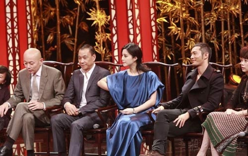 | Phạm Băng Băng luồn tay chỉnh áo tại một sự kiện lớn. |