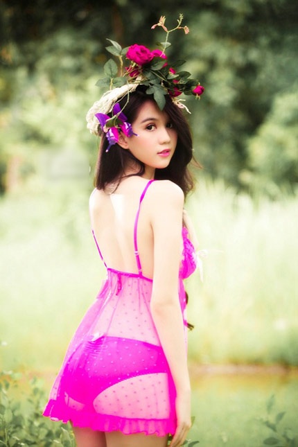 Thời điểm cô thường xuyên chụp ảnh nội y và vòng hoa được phối đồng màu.