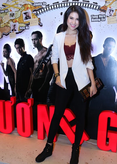 | Siêu mẫu Thu Hằng nổi bật tại buổi ra mắt phim Hương Ga với set trang phục cá tính, mạnh mẽ, trong đó áo bra-top làm điểm nhấn gợi cảm cho tổng thể sành mốt. |