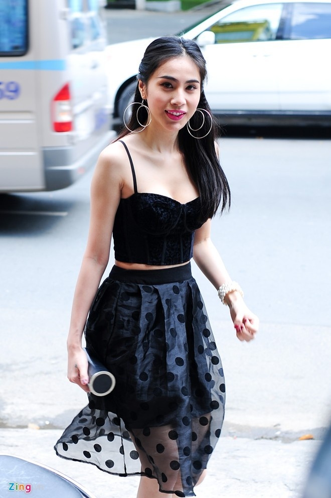 | Diệu Huyền ăn vận sành điệu gây chú ý phía hậu trường show thời trang thường niên. Người đẹp diện áo bra-top tông trắng, kiểu dáng cut-out khá hợp mốt. |