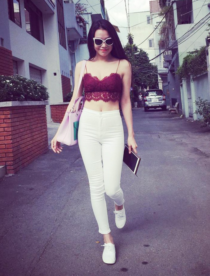 | Bà mẹ một con Trương Quỳnh Anh cho thấy khả năng nhanh nhạy xu hướng khi diện mốt áo bra-top hiện đại, có kiểu dáng cách điệu sáng tạo và hợp vóc dáng. |