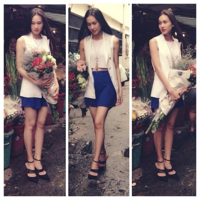 Bạn gái ca sĩ Bằng Kiều - hoa hậu Dương Mỹ Linh - nổi bật tại chợ hoa Hồ Thị Kỷ, Sài Gòn khi diện bộ trang phục thanh lịch, hợp xu hướng. Áo vest không tay mix ăn ý cùng chân váy bút chì và áo crop-top khoe eo thon.