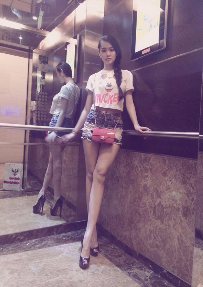 Trong khi đó, người mẫu Linh Chi được khen ngợi là nữ tính và dịu dàng dù diện trang phục áo thun, quần shorts jeans hiện đại. Đôi giày cao gót tôn vóc dáng kiều diễm của nữ người mẫu.