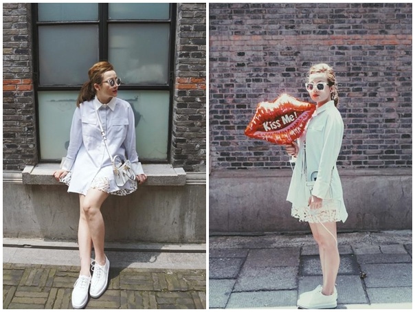 Chị em Song Yến có chuyến du lịch ở Trung Quốc. Trên đường phố Thượng Hải, cặp chị em phong cách nhất showbiz Việt nổi bật với bộ trang phục theo tông màu vàng hiện đại, năng động. Yến Trang nữ tính với set đồ màu vàng bơ nhã nhặn, còn ''Én em'' cá tính với váy màu xanh quân đội, giày sandals chiến binh mạnh mẽ.
