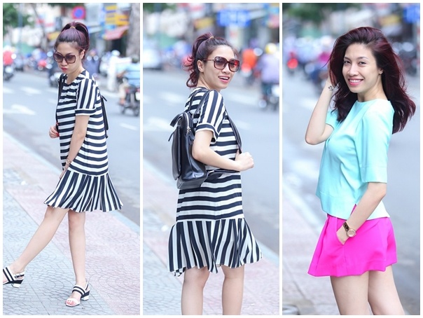 | Trà Ngọc Hằng trông tươi trẻ khi diện những set trang phục bắt mắt khi dạo phố Sài Gòn. Nữ người mẫu dần xóa bỏ hình ảnh thời trang thảm họa để tiến gần với danh hiệu người đẹp phong cách và sang trọng bậc nhất Vbiz. |