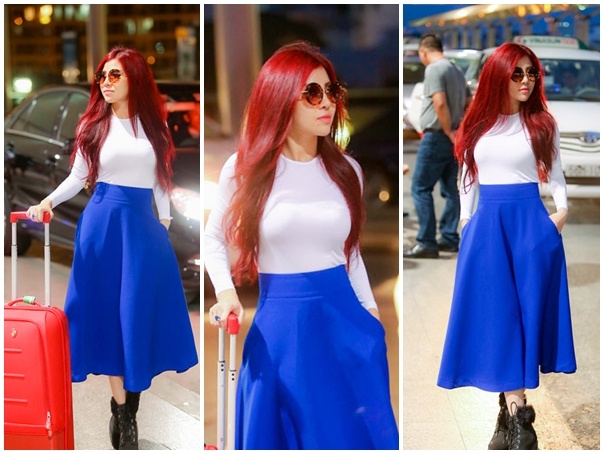 DJ Thúy Khanh trông khá gợi cảm với set trang phục áo thun, chân váy midi đơn giản, tinh tế khi cô đáp chuyến bay lưu diễn châu Âu. Mái tóc nhuộm nâu đỏ của nữ ca sĩ Nữ hoàng remix - Lên là lên được khen ngợi là phù hợp với xu hướng và hình tượng nữ DJ gợi cảm, mạnh mẽ.