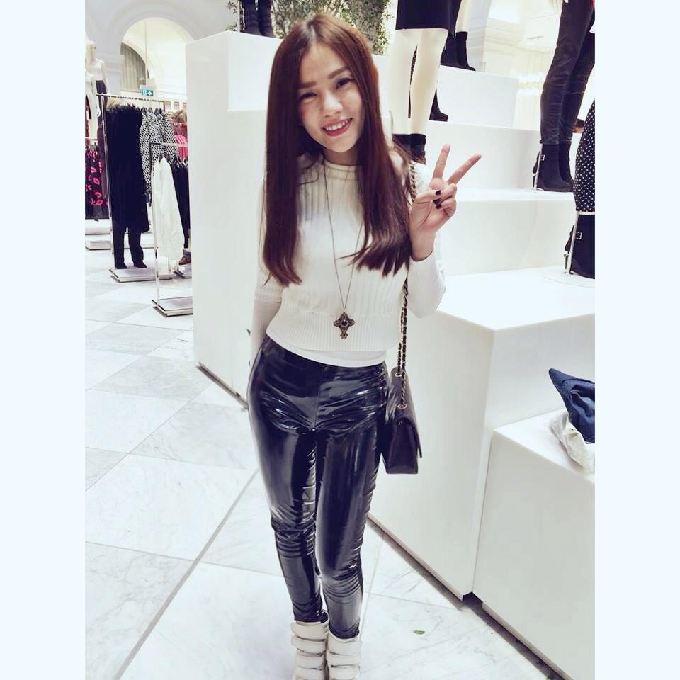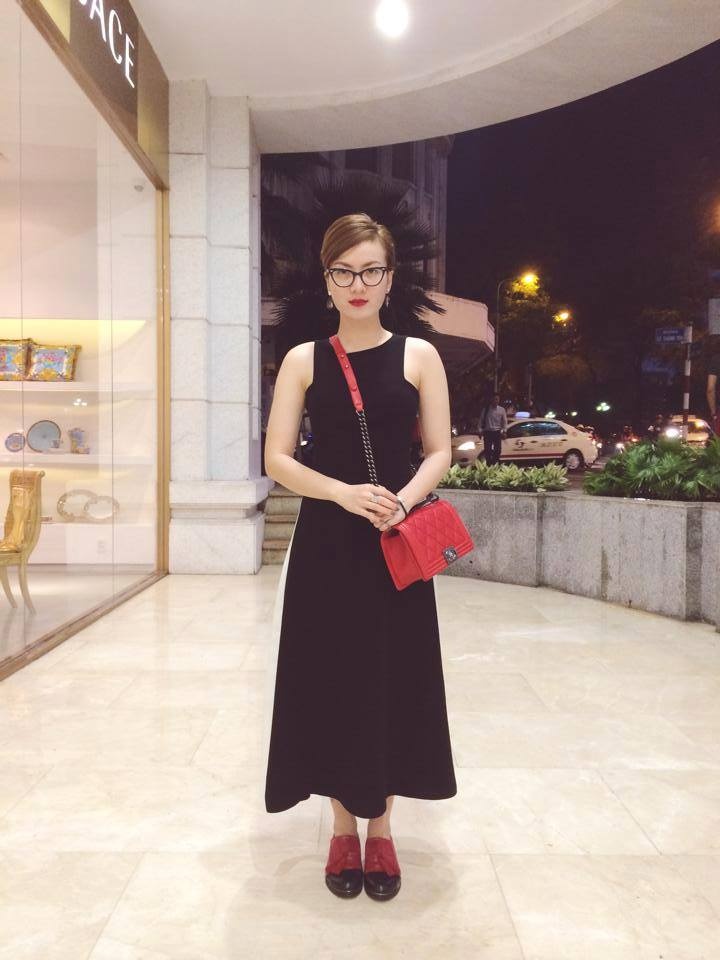 Trong khi đó, Thu Thủy chứng minh sự sành mốt với quần da bóng, áo thun kín cổ và điểm nhấn là chiếc vòng dài.