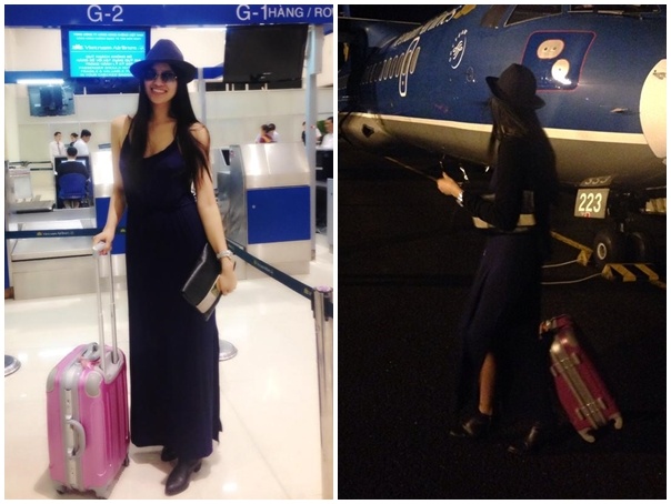 | Lê Thị Phương diện bộ váy chất jersy đơn giản khi đáp chuyến bay ra Hà Nội. |