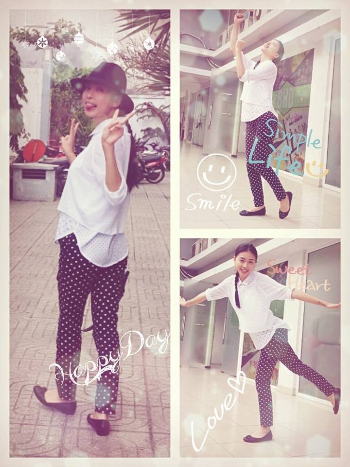 Trang phục cổ điển, thanh lịch được Ngô Thanh Vân yêu thích trong thời gian qua. Khi xuống phố dịp cuối tuần, ''bà bầu'' của nhóm nhạc 365 diện mốt chấm bi nữ tính, kết hợp giữa áo sơ-mi đơn giản và quần âu họa tiết cổ điển.