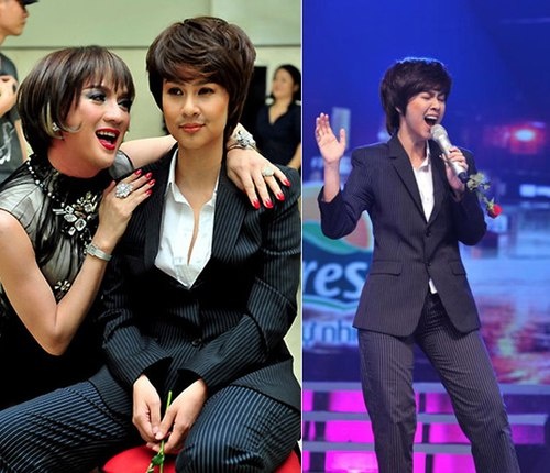 Hoàn toàn trái ngược với Kim Thư, bạn diễn Đàm Vĩnh Hưng chọn cách giả gái.