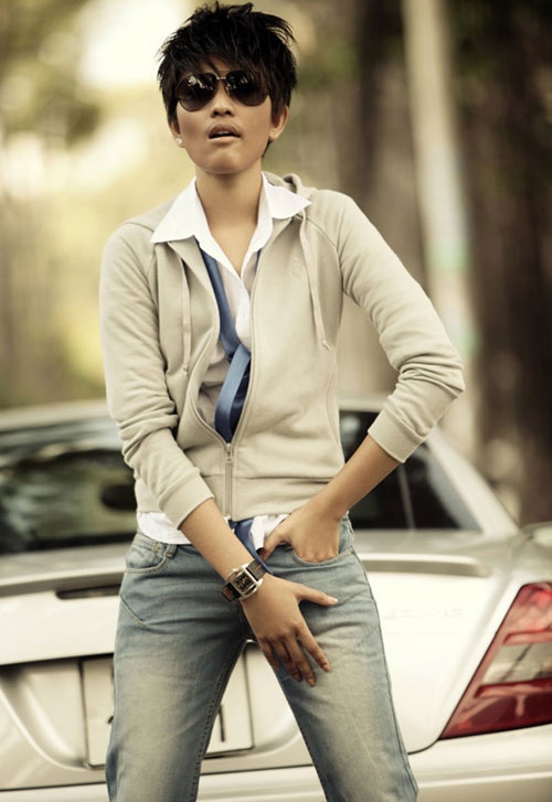 Giống Chi Pu, Á hậu Trương Thị May từng có những hình ảnh đậm chất tomboy khi hóa trang thành chàng trai lịch lãm. Với nước da nâu, ngoại hình không quá tròn đầy, nữ người mẫu đễ dàng hóa thân vào nhân vật được yêu cầu.