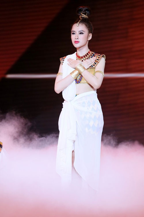 | Một trong những bộ cánh thể hiện gu thời trang và lợi thế ngoại hình cân đối của Yến Trang. Thiết kế có phong cách trẻ trung, gam màu ngọt ngào và khoảng hở vừa đủ giúp nữ ca sĩ sinh năm 1984 trở thành trọng tâm của đêm thi. |
