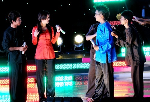 | Thủy Tiên dịu dàng bất ngờ khi hát dân ca, trái ngược với vẻ gợi cảm mỗi lần xuất hiện trên sân khấu. |
