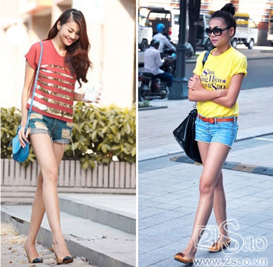 | Hồ Ngọc Hà tuy thường bị chê với thân hình quá gầy nhưng khi diện short cô khiến nhiều người phải mê mẩn với cặp đùi "mật ong". |