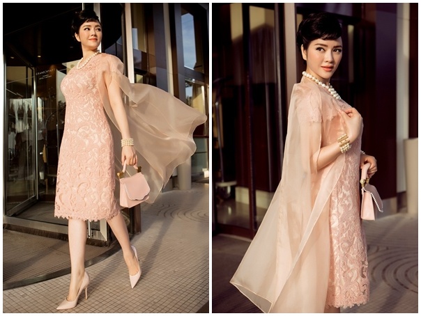 | Lý Nhã Kỳ chọn trang phục sang trọng, quý phái. Người đẹp khoác lên mình thiết kế chất liệu ren, tông màu hồng pastel hợp xu hướng. Để vẻ ngoài thêm phần cổ điển, diễn viên Mùa hè lạnh chọn tông trang điểm trong trẻo, mái tóc ngang thanh lịch. |