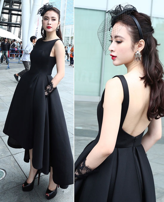 | Angela Phương Trinh trở thành tâm điểm nhờ bộ váy khoét lưng, dáng đuôi tôm và phụ kiện. Người đẹp 9X như tiểu thư đài các và đẹp trong từng chi tiết nhỏ nhất. |