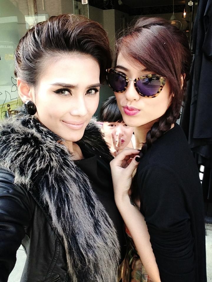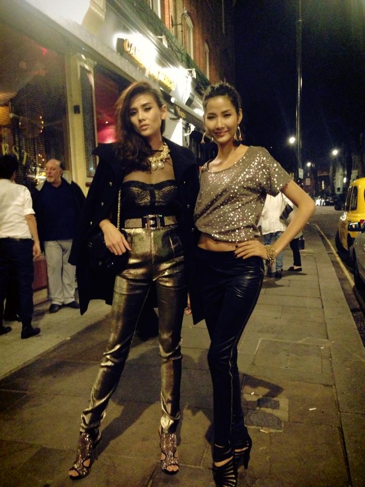| Hoàng Thùy và Võ Hoàng Yến chụp hình trước khi tham dự buổi tiệc khi cả hai công tác ở London. |