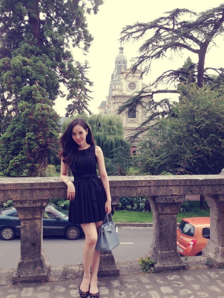 | Người mẫu Ngọc Bích tận hưởng không gian lãng mạn ở Paris, cô mặc trang phục đơn giản, giày búp bê đế bệt phối cùng túi hiệu sành mốt. |