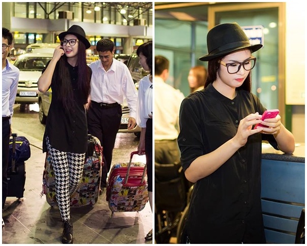 | Nữ kiện tướng dancesport Khánh Thi diện trang phục táo bạo tại sân bay, chiếc quần ôm sát họa tiết da báo kết hợp cùng áo khoác đính hạt lấp lánh, nữ giám khảo Cặp đôi hoàn hảo chọn chiếc băng đô nữ tính, phong cách có phần hơi màu mè. |