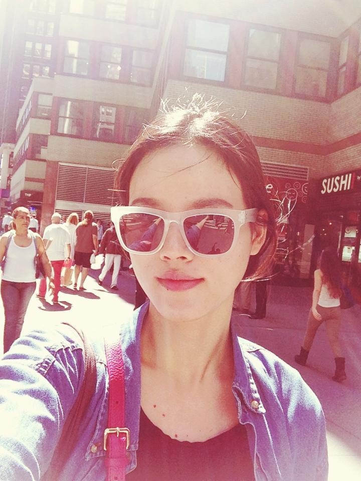 | Sau kỳ nghĩ ngắn ngày tại Việt Nam, Tuyết Lan đáp chuyến bay sang New York, cô có sở thích chụp hình tự sướng trong lúc đến điểm làm, người đẹp khoe chiếc kính màu trắng đục rất hiện đại và hợp mốt. |
