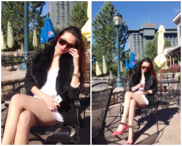 | Người mẫu Khánh My có chuyến công tác tại Mỹ, cô tham gia một bộ phim mới. Tận dụng ngày nghĩ cuối tuần nữ diễn viên có buổi hẹn cà phê cùng bạn bè, cô ăn mặc đơn giản với váy ngắn tông trắng. áo khoác lông rất sành điệu, kết hợp cùng đôi giày tông màu hồng ngọt ngào. |