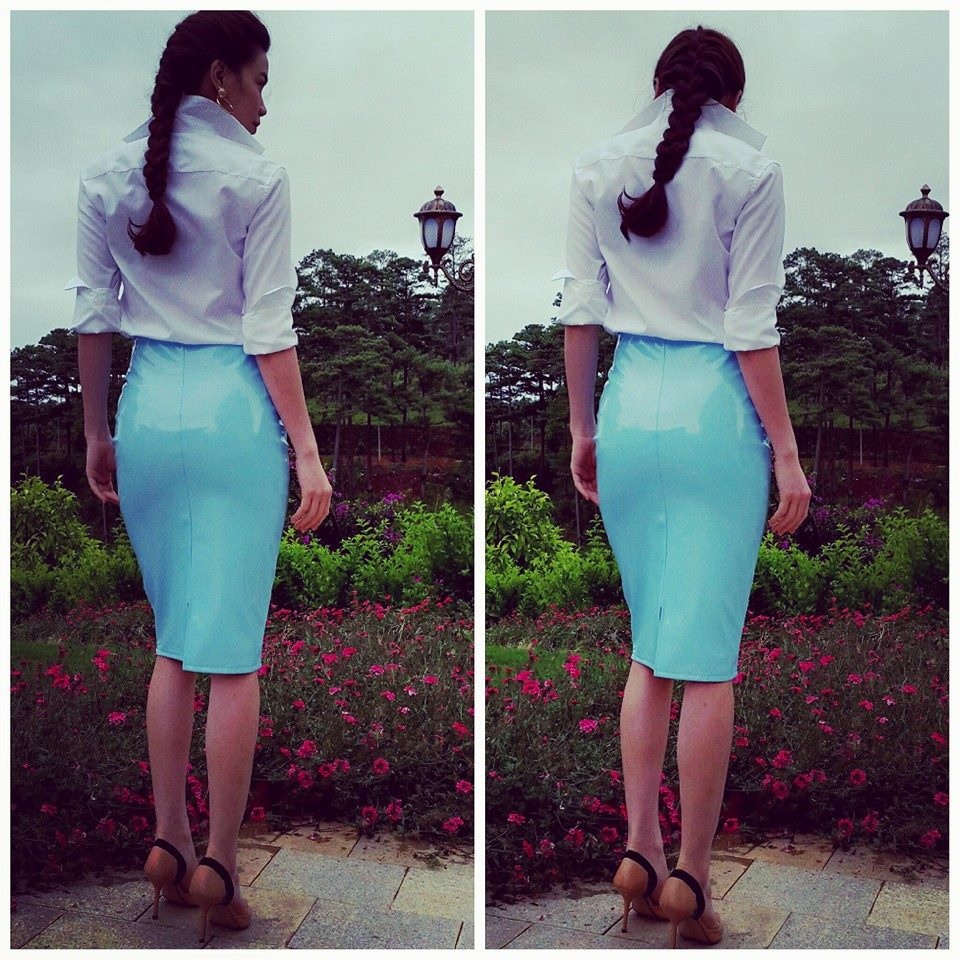 Hồ Ngọc Hà vùa đăng tải những hình ảnh mới nhất. Trong đó, nữ ca sĩ diện chân váy bút chì màu xanh kết hợp cùng áo sơ-mi trắng khá thanh lịch, nền nã.
