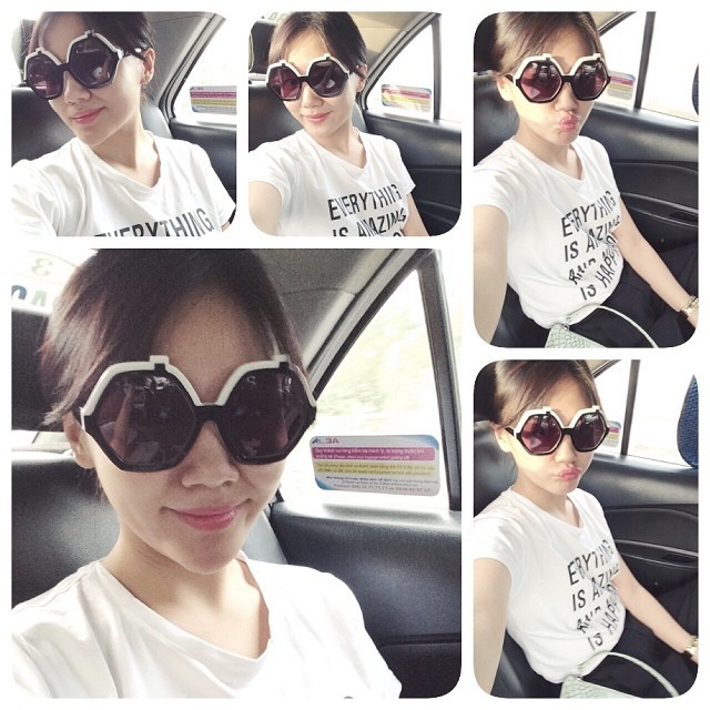 Một ngày khác, giọng ca Ngày chung đôi diện áo thun đơn giản, tạo điểm nhấn với kính mắt hình lục giác sành điệu, hợp mốt.