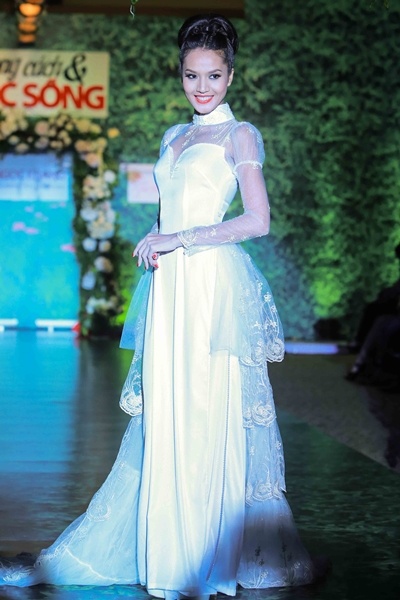 | Vào mùa xuân năm 2014, người đẹp Diễm Trang cũng từng sở hữu những chiếc áo dài cách tân thanh lịch. Trong ảnh, á hậu diện mẫu áo dài ren điệu đà, nữ tính. |
