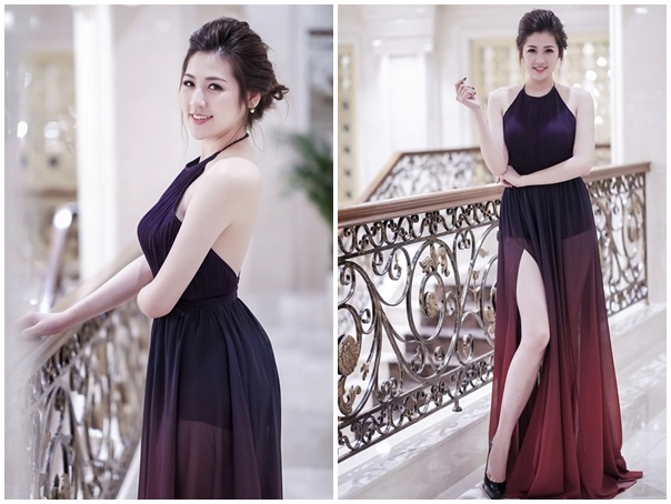 | Khi diện trang phục tôn màu da, Hoàng Thùy khéo léo chọn bộ cánh chất liệu voan mỏng manh tạo nét mềm mại và quyến rũ. Đi kèm là kiểu tóc sang trọng và tông trang điểm đậm gợi cảm. |