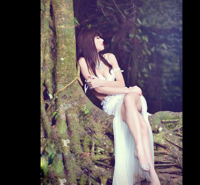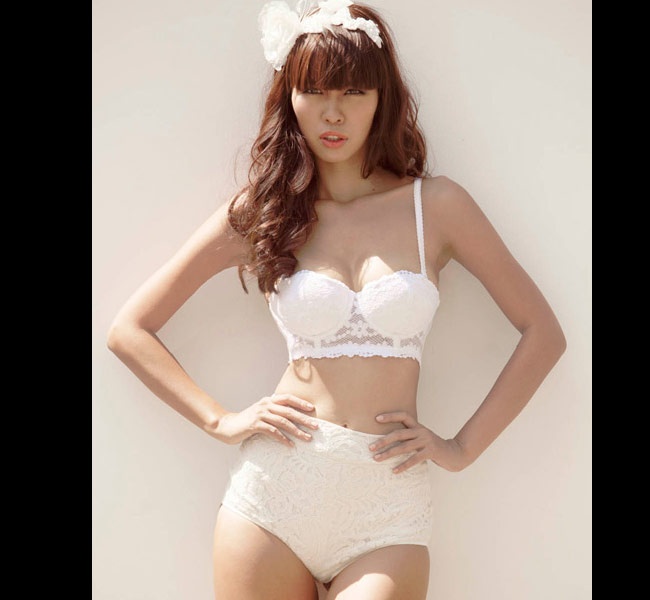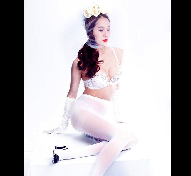 | Thủy Tiên gợi cảm với nội y cô dâu. |