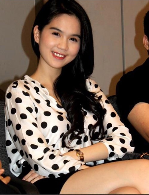 | Ngọc Trinh chọn sơ mi chấm bi đáng yêu của Zara. |