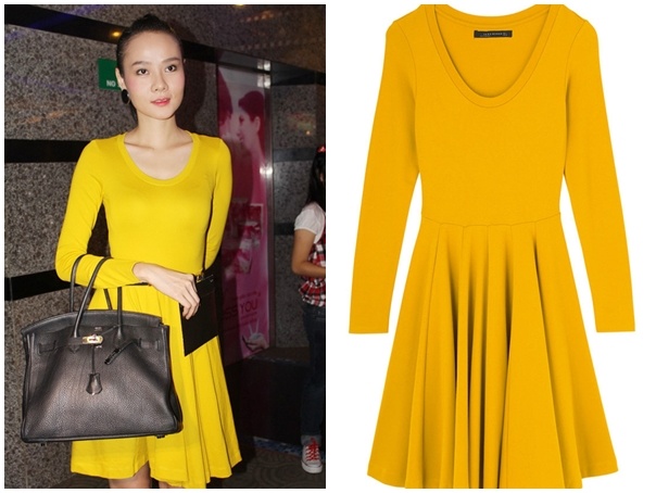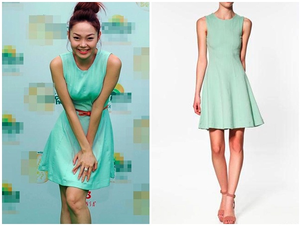 Trong một sự kiện, nữ ca sĩ còn diện một thiết kế đầm liền thân mang gam màu xanh bạc hà dịu mắt thuộc BST mùa hè 2013 của Zara.