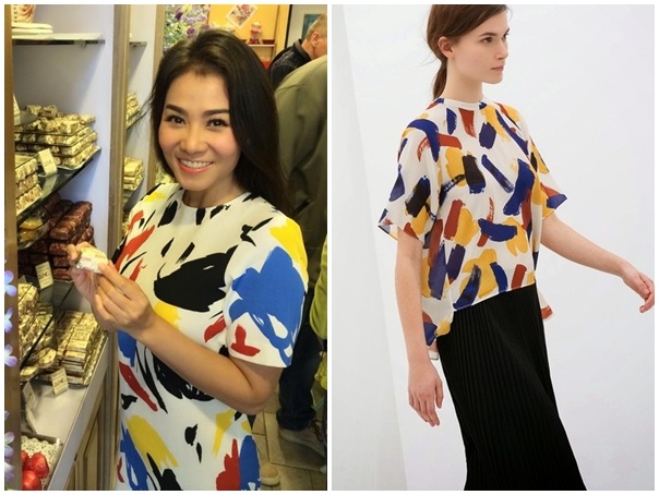 Bên cạnh những món hàng hiệu cao cấp, Thu Minh còn ưa chuộng những thiết kế đời thường của nhãn hàng Zara và thường diện trang phục của thương hiệu này khi xuống phố. Trong ảnh, nữ ca sĩ đón đầu xu hướng mùa hè với chiếc váy trẻ trung, họa tiết sành điệu có giá hơn 1,6 triệu VND.