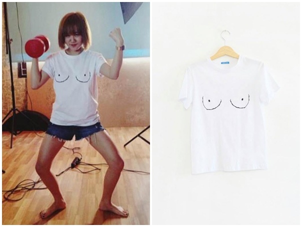 Văn Mai Hương tỏ ra thích thú với chiếc áo phông trắng in hình nhạy cảm có giá 300 ngàn đồng.