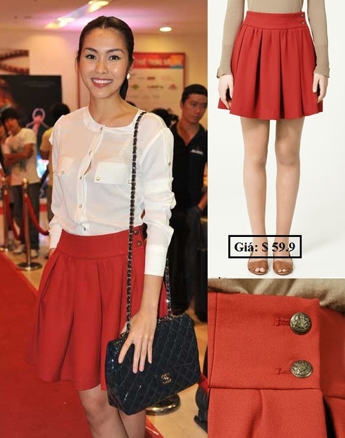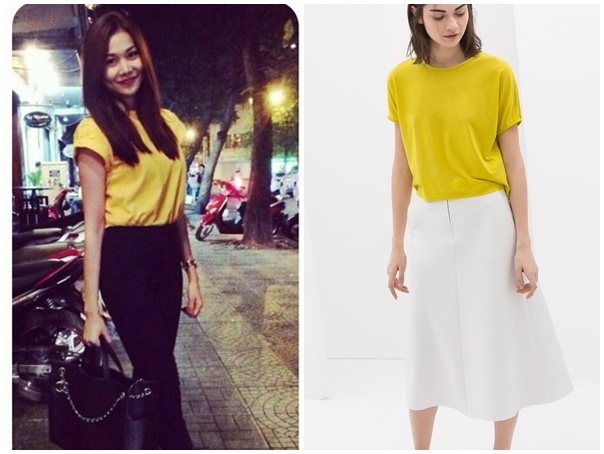 Phong cách thanh lịch của hãng thời trang Zara cũng rất phù hợp với Tăng Thanh Hà. Cô khéo léo mix chiếc váy gần 60 USD với áo sơ-mi trắng đơn giản.