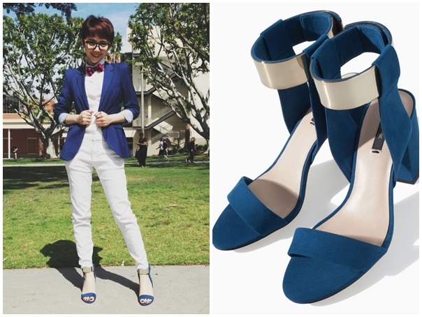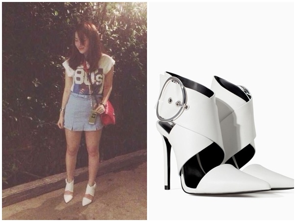 Tín đồ thời trang đình đám Tóc Tiên cũng có sở thích dùng hàng hiệu giá bình dân. Trong nhiều set trang phục xuống phố, người đẹp chọn các sản phẩm trên dưới 1 triệu đồng. Đôi ankle-strap sandals quai ánh kim bắt mắt được cô sử dụng nhiều trong thời gian qua có giá 1,2 triệu VND.