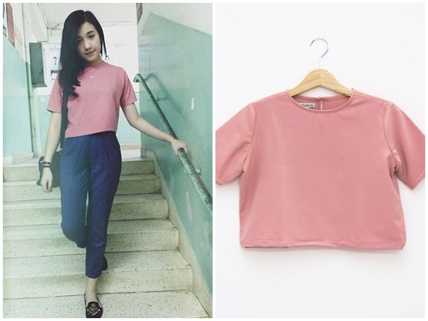| Là fashion icon được giới trẻ ngưỡng mộ, thế nhưng Mie Nguyễn lại say mê các nhãn hàng thời trang trong nước. Chiếc croptop 210 ngàn đồng này có kiểu dáng cơ bản và dễ phối đồ. Hot girl chọn cách kết hợp khá đơn giản với quần baggy vải và giày lười. |