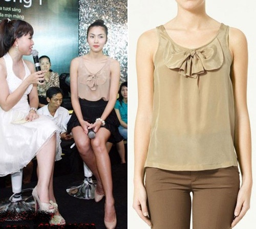 Được đánh giá là "nữ hoàng giải trí" mặc đẹp nhất nhì showbiz Việt, thế nhưng Hồ Ngọc Hà lại có niềm đam mê với các sản phẩm thời trang bình dân, thuộc dòng hàng ứng dụng của thương hiệu Zara, Top Shop, H&M... Nữ ca sĩ luôn là người đón đầu sử dụng các sản phẩm mới. Trong ảnh là mẫu áo họa tiết mùa hè 2012 được Hồ Ngọc Hà ưu ái trưng diện và nhiều sao Việt cũng ưa chuộng sau đó không lâu.