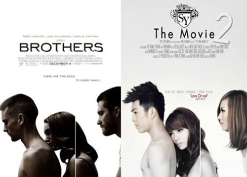 Tấm poster của hai chị em Yến Trang – Yến Nhi đặt cạnh poster phim nổi tiếng của nước ngoài thực hiện trước đó đã cho thấy rõ sự trùng lặp tới 90%.