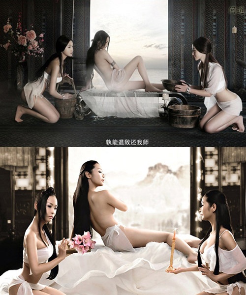 | Không chỉ giống nhau về ý tưởng mà cả trang phục, cách trang điểm, đầu tóc cho đến tư thế tạo dáng cũng gần như giống hệt nhau, bởi vậy, Lê Kiều Như khó lòng chối cãi về việc “đạo” ý tưởng của người đẹp Hoa Ngữ Trương Hinh. |